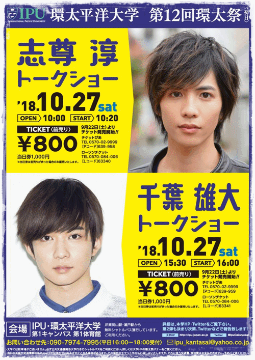 ・一般販売:イープラス(千葉雄大 ウキャキャトークショー)